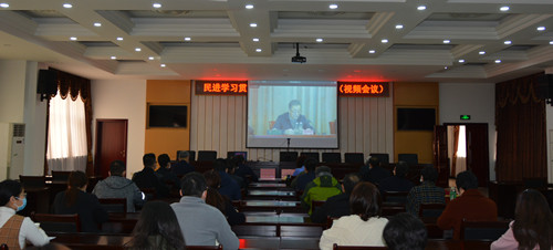 3月15日下午,民进河北省委联合民进石家庄市委组织收看民进中央召开的“民进学习贯彻全国两会精神座谈会(视频会议)”,并就学习贯彻全国两会精神举行座谈。省人大副主任、民进省委主委张妹芝,副主委张运凯、李建强、关军锋,民进省委机关、石家庄市委机关全体干部,以及省会部分骨干会员共40余人参加了会议。